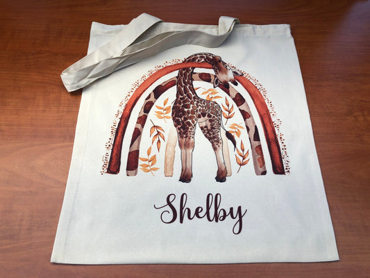 Personalised Giraffe Rainbow Animals Tote Bag ( Elephant / Giraffe / Zebra / Leopard / Lion ) with optional personalisation
