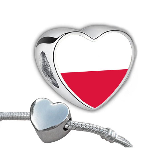 Polish Poland heart shaped bracelet stainless steel charm bead. Personalised Charm bead Large hole Add on bead charm. Valentine’s gift.