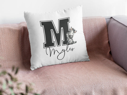 Personalised jungle safari cushion-kids jungle nursery cushion-personalized baby nursery decor gift-gender neutral gift-black & white zebra