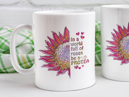 Protea 11oz mug tropical flower motivational quote gift In a world full of roses South African gift for her mum mom ouma best friend