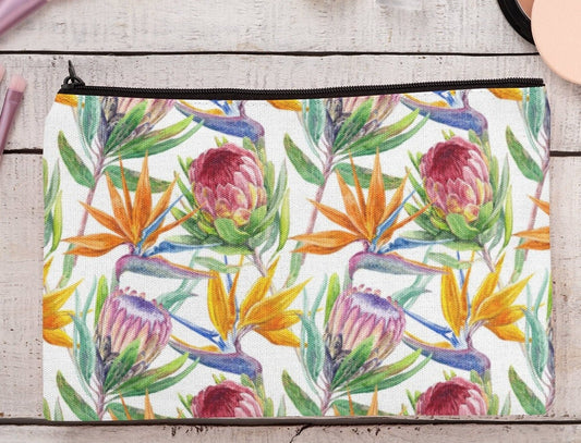 Protea and Strelitzia design linen cosmetics or pencil case