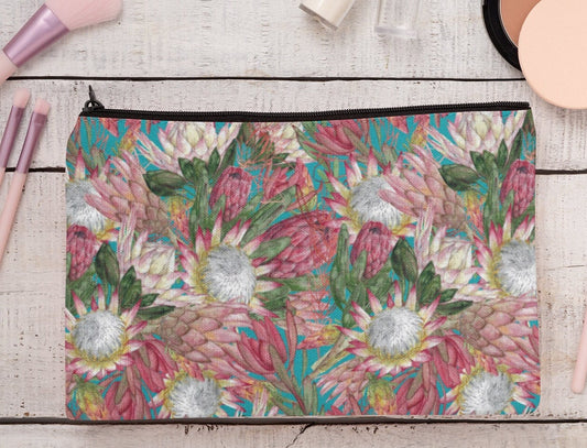 Protea design cosmetic zip case purse South Africa Australia King Protea Fynbos Sugarbush Pencil case handbag organiser Birthday gift