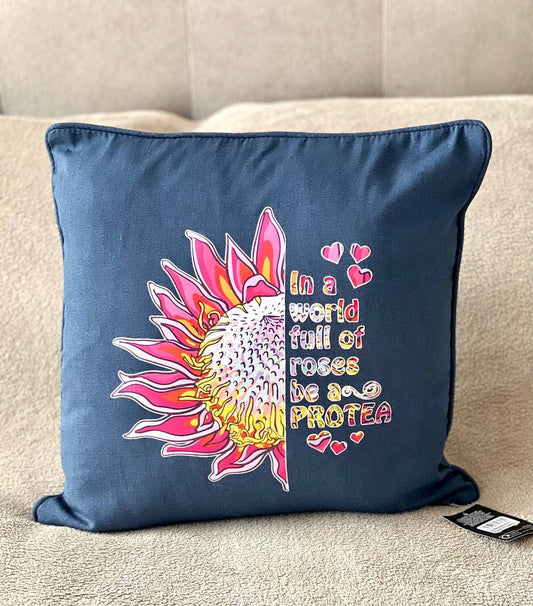Protea cushion cotton Navy In a world full of Roses be a Protea scatter cushion pillow home bedroom decor birthday gift for mum mom