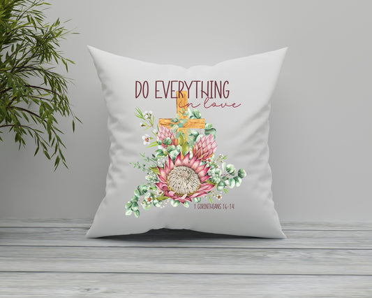 Protea Faith Cushion Cover Scripture "Do everything in love" Home decoration pink floral pillow Birthday Mothers Day Confirmation Bible gift