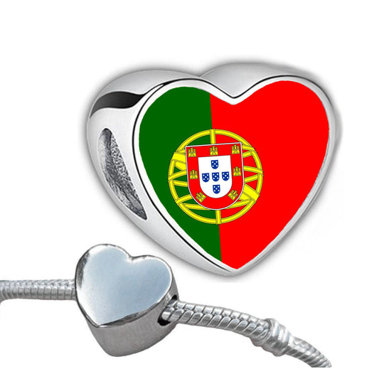 Portugal Portuguese Flag heart charm personalised stainless steel charm bead. Add on large hole charm bead Gift for mom mum Valentine’s gift