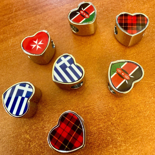 Personalised hand printed Flags of the World bracelet heart stainless steel charm bead Add on bead. Large hole bead Anniversary gift for her