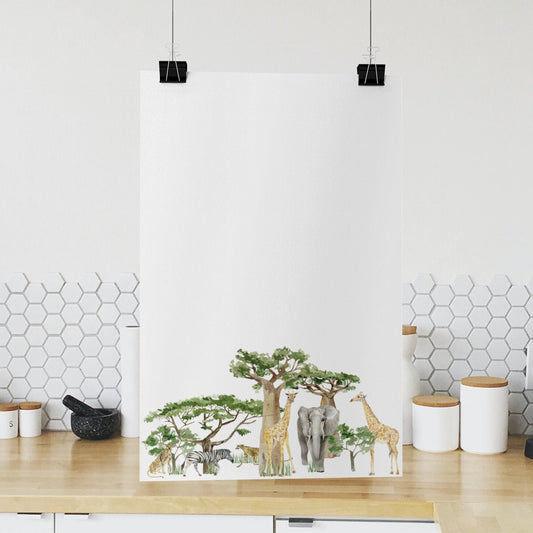 Safari Animals Tea Kitchen Bar towel African animals Giraffe Elephant Chetah Zebra Boabab Boab tree Housewarming Mother’s Day Birthday gift
