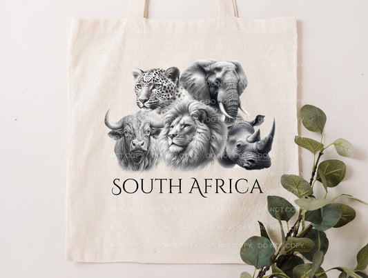 Safari Animals Big 5 South Africa Fabric Tote Bag Elephant Lion leopard Rhino Buffalo Reusable Art Eco friendly Travel Gift Jungle Savanah