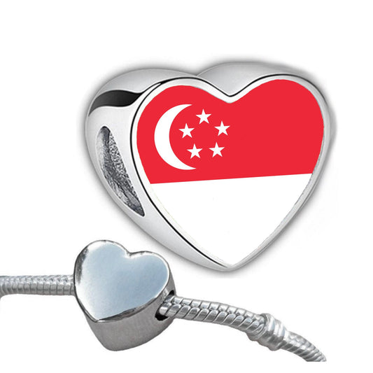 Singapore Flag heart stainless steel charm bead personalised large hole charm add on bead. Valentine’s gift for mom mum.