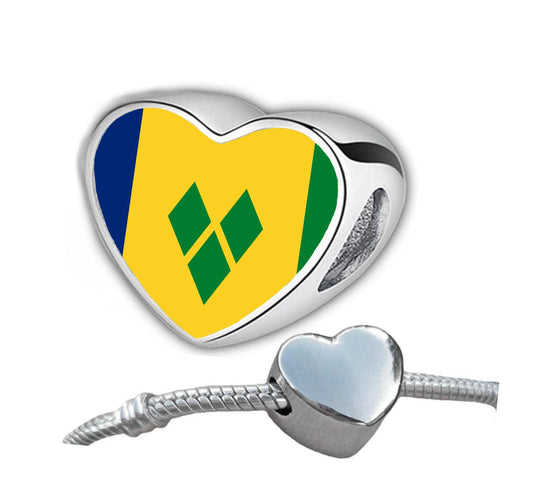 Saint Vincent and the Grenadines Flag heart shaped bracelet stainless steel charm bead Charm Add on charm Large hole bead Valentine’s gift