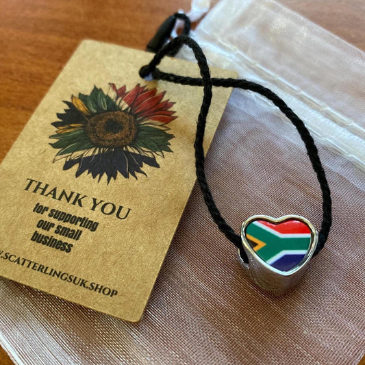 South Africa Flag heart shaped bracelet stainless steel charm bead Christmas Birthday Valentine Day gift Personalised Large hole add on bead