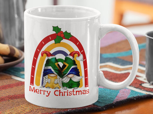 Christmas mug Gnome Gonk Elf South Africa Merry Christmas Gnome 11 oz mug. Christmas Gnome with South African Flag hat. Hot chocolate mug.