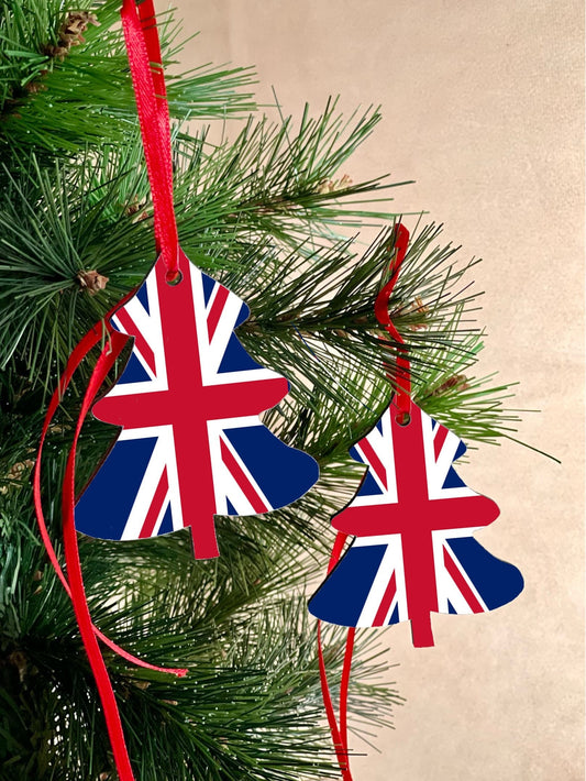 Christmas decorations tree ornament United Kingdom Union Jack Christmas Decoration. Tree shaped decoration hanging ornament.