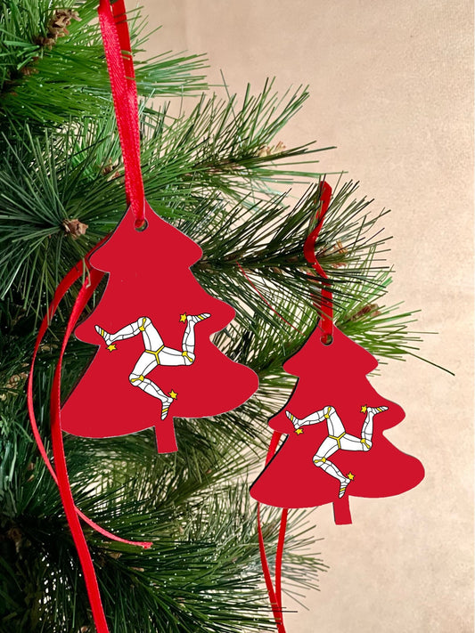 Christmas ornament Isle of Man Christmas Decoration. Tree shaped hanging ornament bright. Manx Ellan Vannin