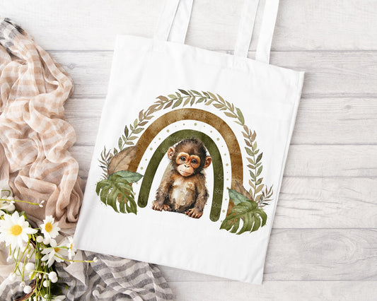 Cheeky Monkey Rainbow personalised custom white tote bag gift for teacher mum nan reusable eco-friendly safari jungle