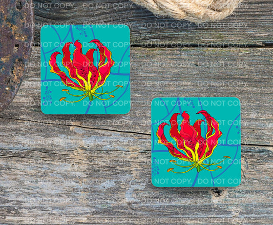Coaster Flame Lily Gloriosa Superba Zimbabwe South Africa flower Botanical Gift Home decoration Table Mat Individual/Set