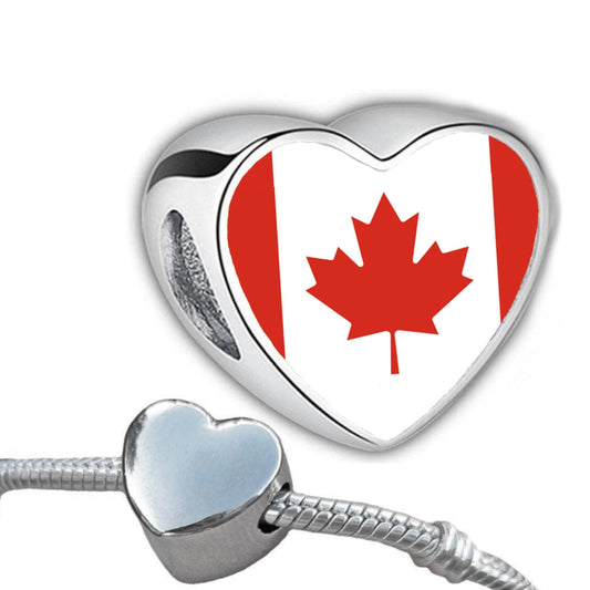 Canadian Canada Flag heart shaped stainless steel charm bead Personalised Charm Addon charm Large hole bead Valentine’s gift for mom mum