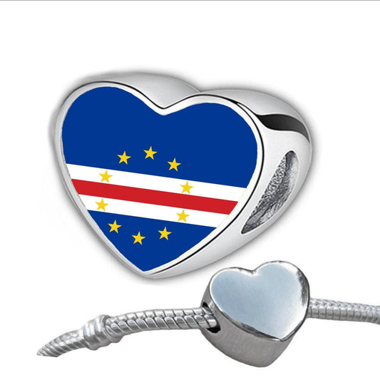 Cape Verde Flag heart stainless steel charm bead personalised charm large hole charm add on bead. Valentine’s gift for mom mum. CHARM ONLY