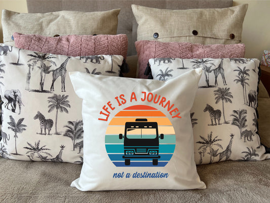 Life is a Journey, not a destination Motorhome, Camper-van or Caravan plush white deluxe 'soft feel' scatter cushion.
