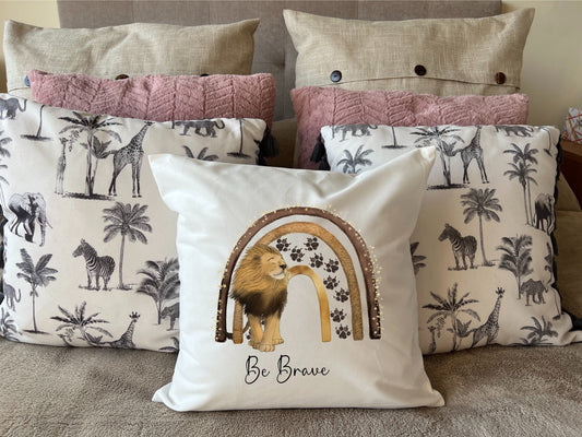 Lion 'Be Brave' plush white deluxe scatter cushion. Available with inner (UK)