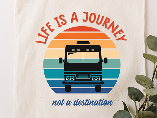 Life is a journey, not a destination Motorhome Caravan natural tone tote bag.