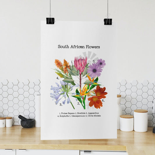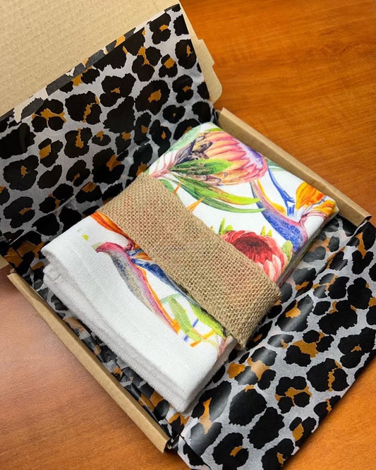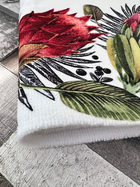 Kitchen Tea towel Protea and Strelitzia design floral tea towel South African flowers bar towel