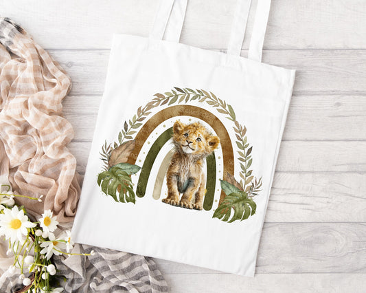 Lion Rainbow personalised custom white tote bag gift for teacher mum nan reusable eco-friendly safari jungle