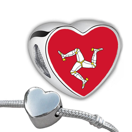 Isle of Man Manx flag heart shaped bracelet stainless steel charm bead charm Addon Large hole Valentine’s Gift for mom mum CHARM ONLY