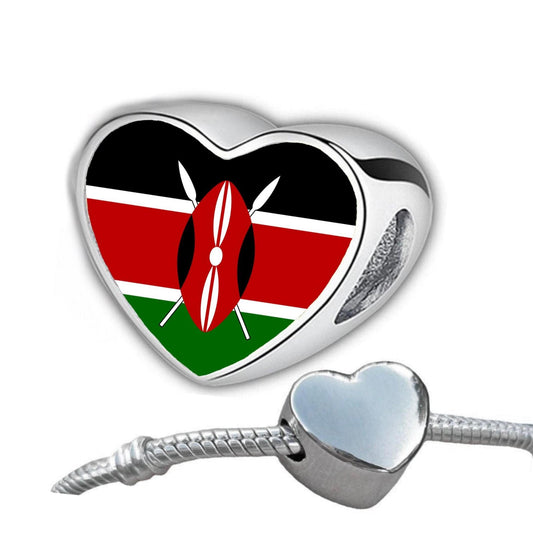 Kenyan Kenya Flag bracelet stainless steel charm bead heart shaped Personalised Add on Large hole Valentine gift for mum mom CHARM ONLY