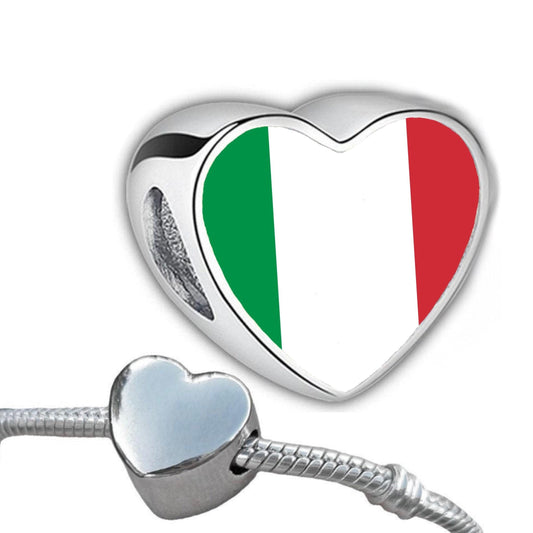 Italy Italian heart shaped bracelet stainless steel charm bead Personalised flag Add on Large hole Valentine’s gift for mom mum CHARM ONLY