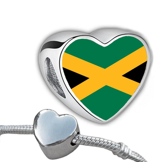 Jamaican Jamaica flag heart shaped bracelet stainless steel charm bead personalised addon large hole Valentine gift for mum mom CHARM ONLY