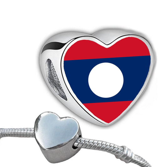 Laos flag heart shaped bracelet stainless steel charm bead Personalised Add on charm Large hole bead Valentine’s gift for mom mum CHARM ONLY