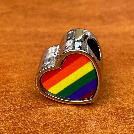 LGBTQ+ Pride heart charm bead Your flag on a stainless steel charm Unique gift Hand printed Personalised charm Valentine gift Add on bead