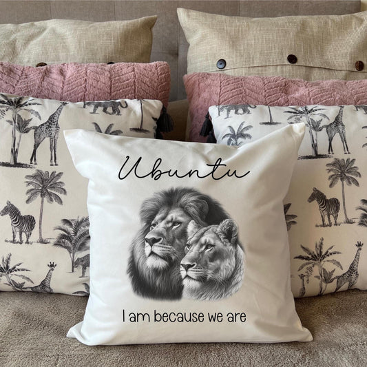Lion Couple Sketch Valentine's Day White Scatter cushion pillow Birthday Gift for Mum Mother's Day Grandmother Safari South Africa Ubuntu