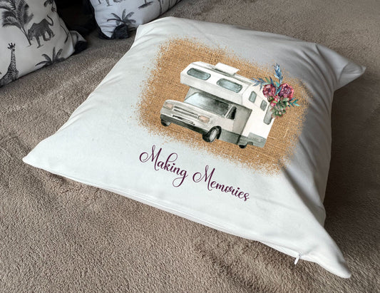 Making Memories Motorhome Campervan Caravan USA / United Kingdom Tree - Plush white deluxe 'soft feel' scatter cushion. ( 40x40cm )