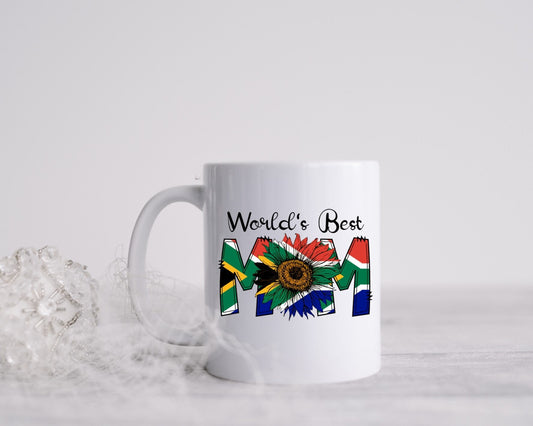 Mothers Day mug Worlds Best Mum Mom South African Flag Sunflower Gift for her Pregnancy Birthday