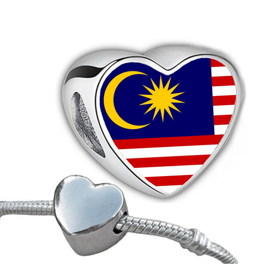 Malaysia Malaysian flag heart shaped bracelet stainless steel charm bead Personalised Add on Large hole bead Valentine’s gift for mom mum