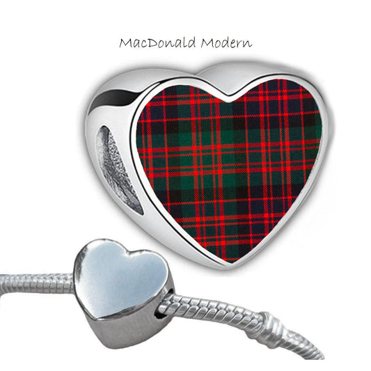 MacDonald Clan Scots tartan heart shaped bracelet stainless steel charm Add on large hole bead personalised Christmas Valentine for her Mum