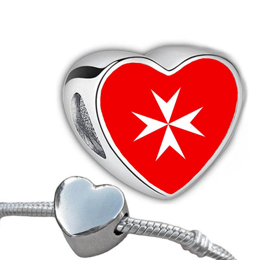 Malta Maltese Cross flag heart shape bracelet stainless steel charm bead Personalised Addon Large hole Valentine gift for mom mum CHARM ONLY