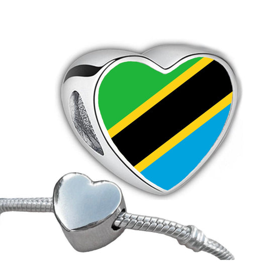 Tanzania Tanzanian heart shaped bracelet stainless steel charm Personalised flag bead Add on large hole charm bead Valentine’s gift Mum Mom