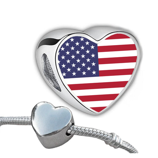 United States USA 'Stars and Stripes' heart bracelet stainless steel charm bead Personalised Charm add on large hole bead Valentine’s gift
