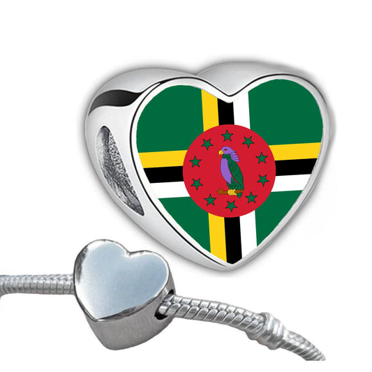 The Commonwealth of Dominica flag heart shaped bracelet stainless steel charm bead personalised charm bead add on charm large hole bead