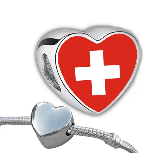 Switzerland Swiss flag heart shaped bracelet stainless steel charm Personalised CHARM ONLY
