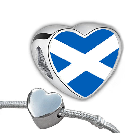 St. Andrews Cross Heart Charm, Saltire Scotland Flag Bead, Stainless Steel