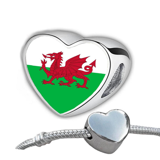 Welsh Dragon Heart Charm, Wales Flag Stainless Steel Bead