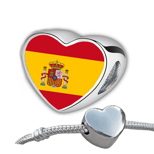 Spain Spanish Flag heart bracelet stainless steel charm bead Personalised Add on Large hole bead Valentine’s gift for mom mum CHARM ONLY