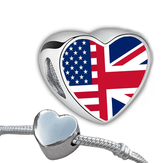 United States United Kingdom blended Flag heart bracelet stainless steel add on large hole charm bead Personalised Valentine gift for mom