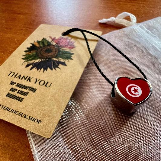 Tunisia Tunisian Flag heart stainless steel charm bead Flag Bead Personalised Charm. Add on bead.