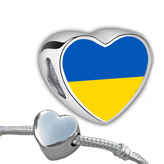 Ukraine Flag Heart Charm, Personalised Stainless Steel Bracelet Bead