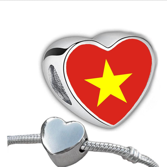 Vietnam Vietnamese flag heart shaped bracelet stainless steel charm bead Personalised Add on Large hole bead Valentine’s gift for mom mum